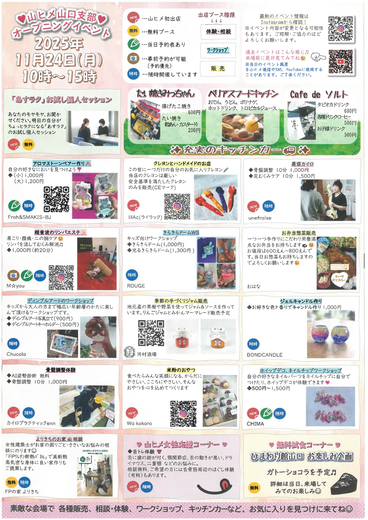 各種販売、相談・体験、ワークショップ、キッチンカーなど、お気に入りを見つけに来てください。