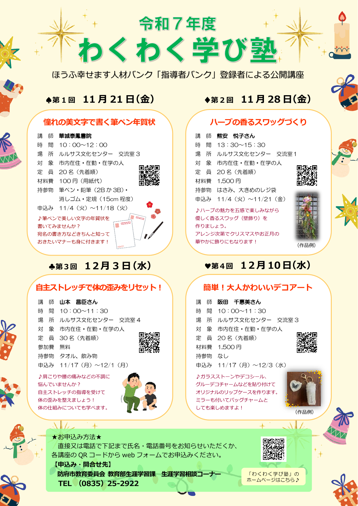 ※講座によって申し込み期間が異なりますのでご注意ください。
