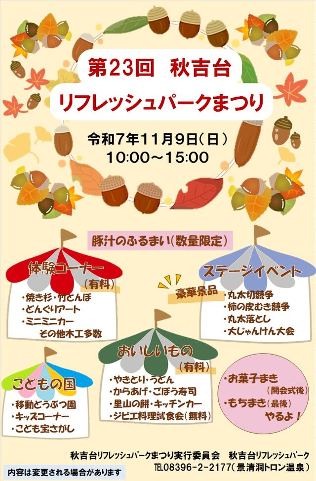 第23回秋吉台リフレッシュパークまつりを開催します。