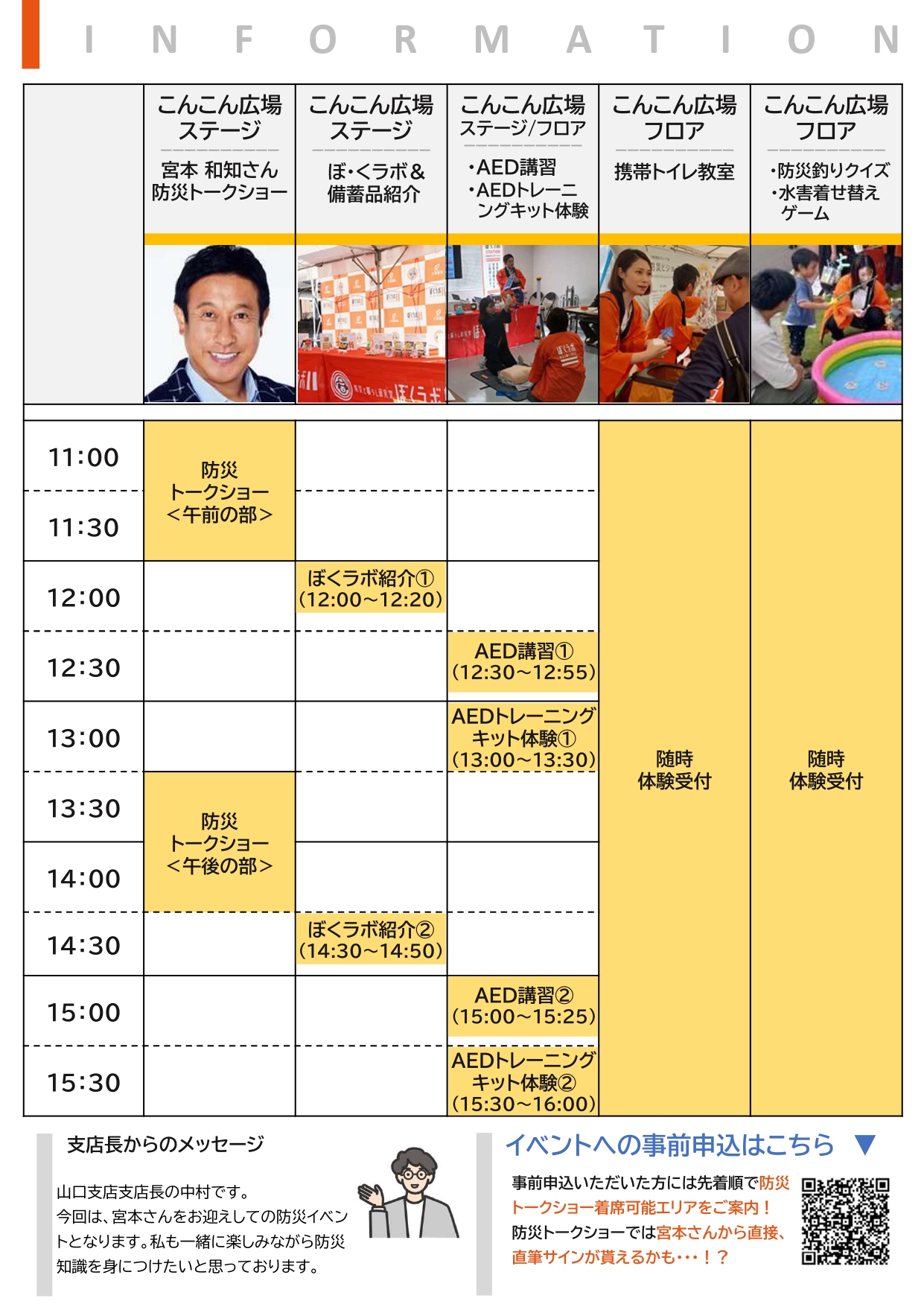 事前申込いただいた方には先着順で防災トークショー着席可能エリアをご案内! 防災トークショーでは宮本さんから直接、直筆サインが貰えるかも・・・!?
