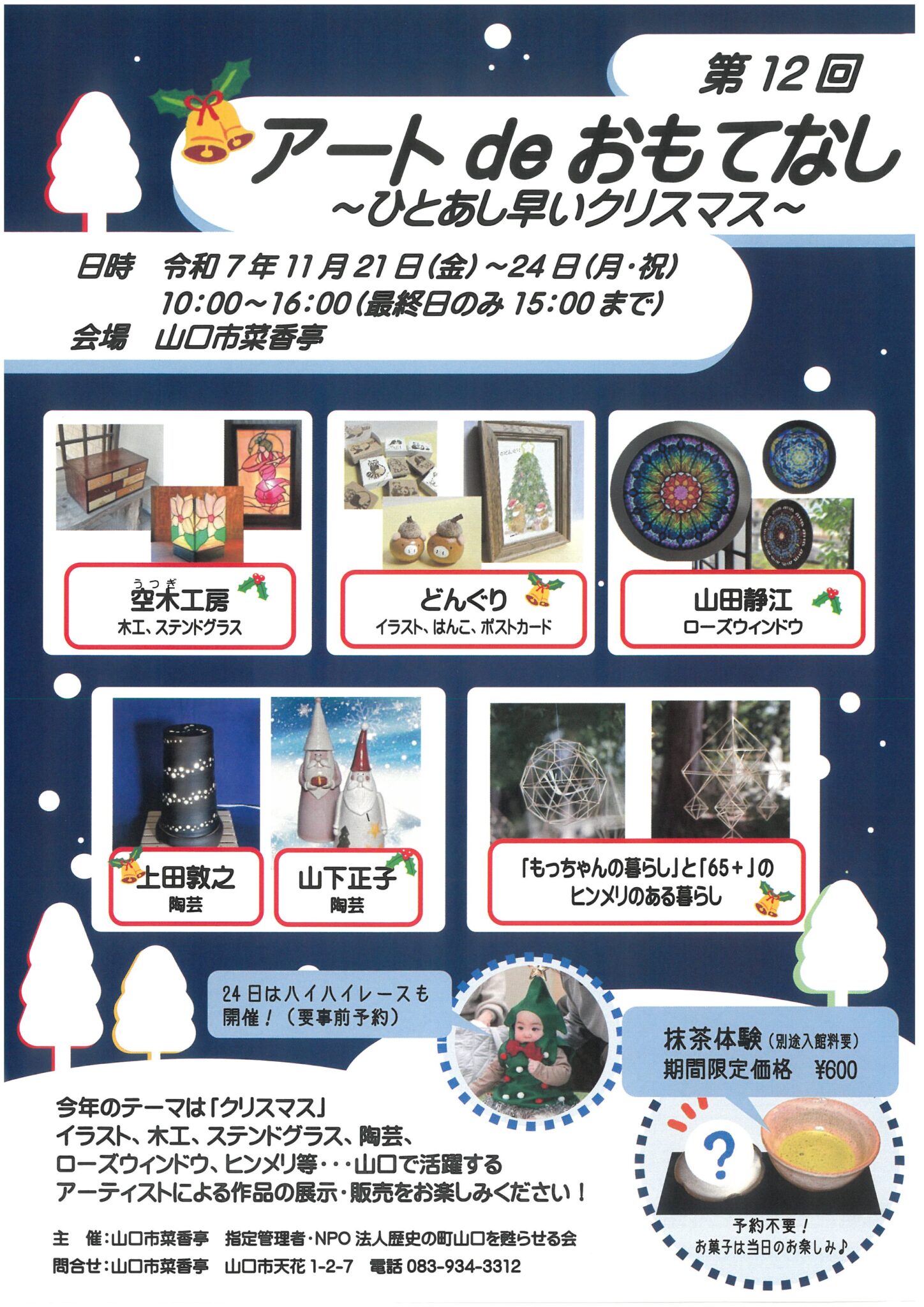 山口で活躍中の作家5グループによる、クリスマスをイメージした作品が並びます。