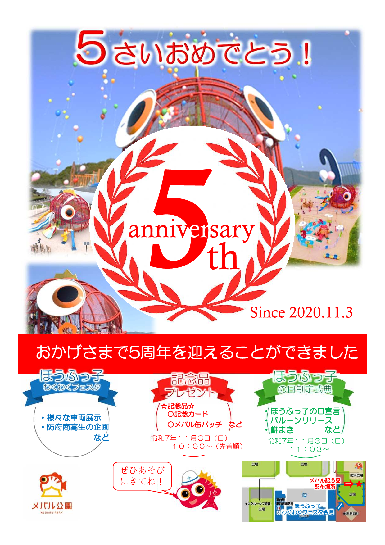 メバル公園が令和7年11月3日(月曜日)で5さいになります!