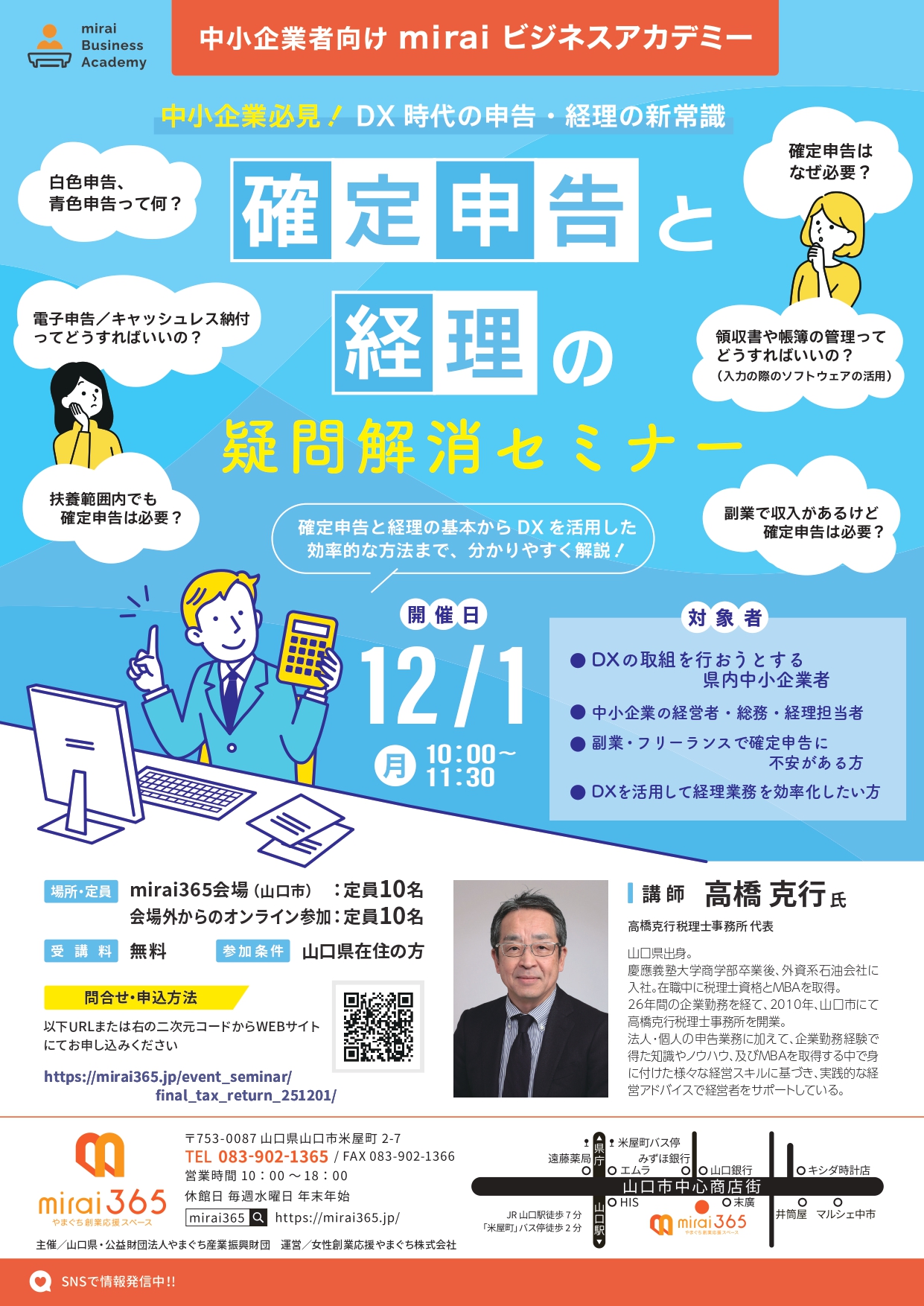 中小企業必見!DX時代の申告・経理の新常識 確定申告と経理の疑問解消セミナー