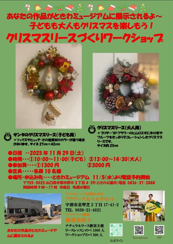 今年の冬はリースづくりにチャレンジしてみませんか。子供の部、大人の部に分けて、本格的なクリスマスリースが作れますよ♪