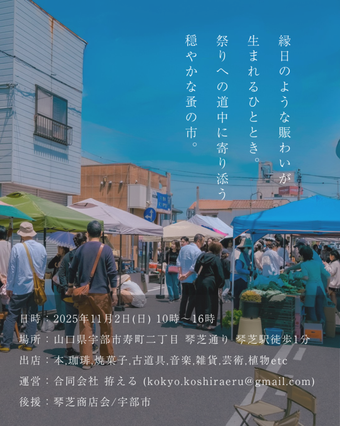 琴芝駅から宇部まつりに向かう道のりで開催される蚤の市です。