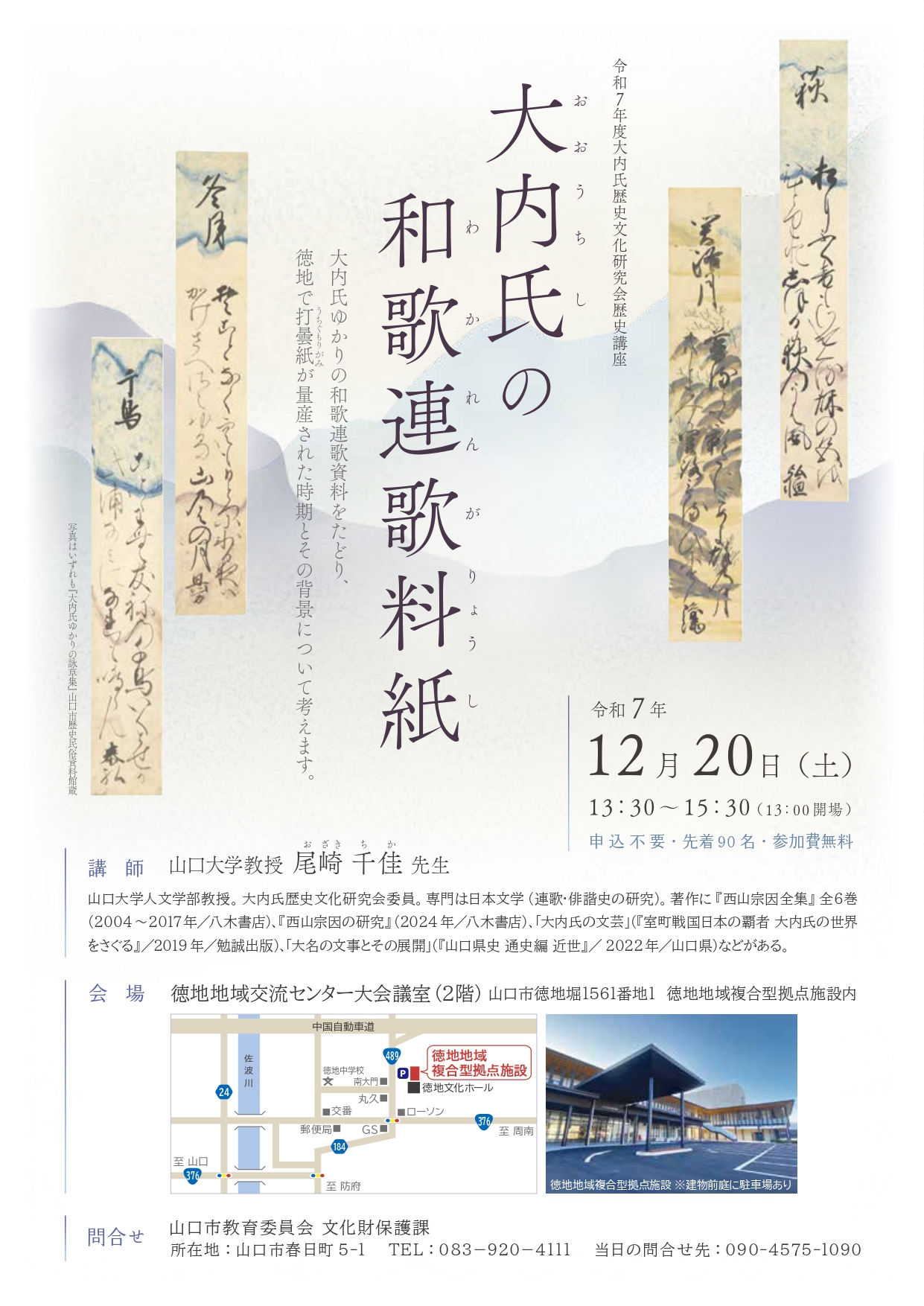 令和7年度 大内氏歴史文化研究会 歴史講座「大内氏の和歌連歌料紙」