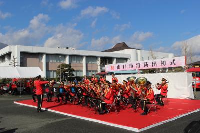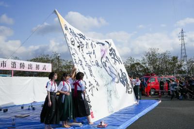 まとい隊演技、観閲行進、消防操法展示訓練、書道パフォーマンス、消防音楽隊演奏、防火もちまきなど