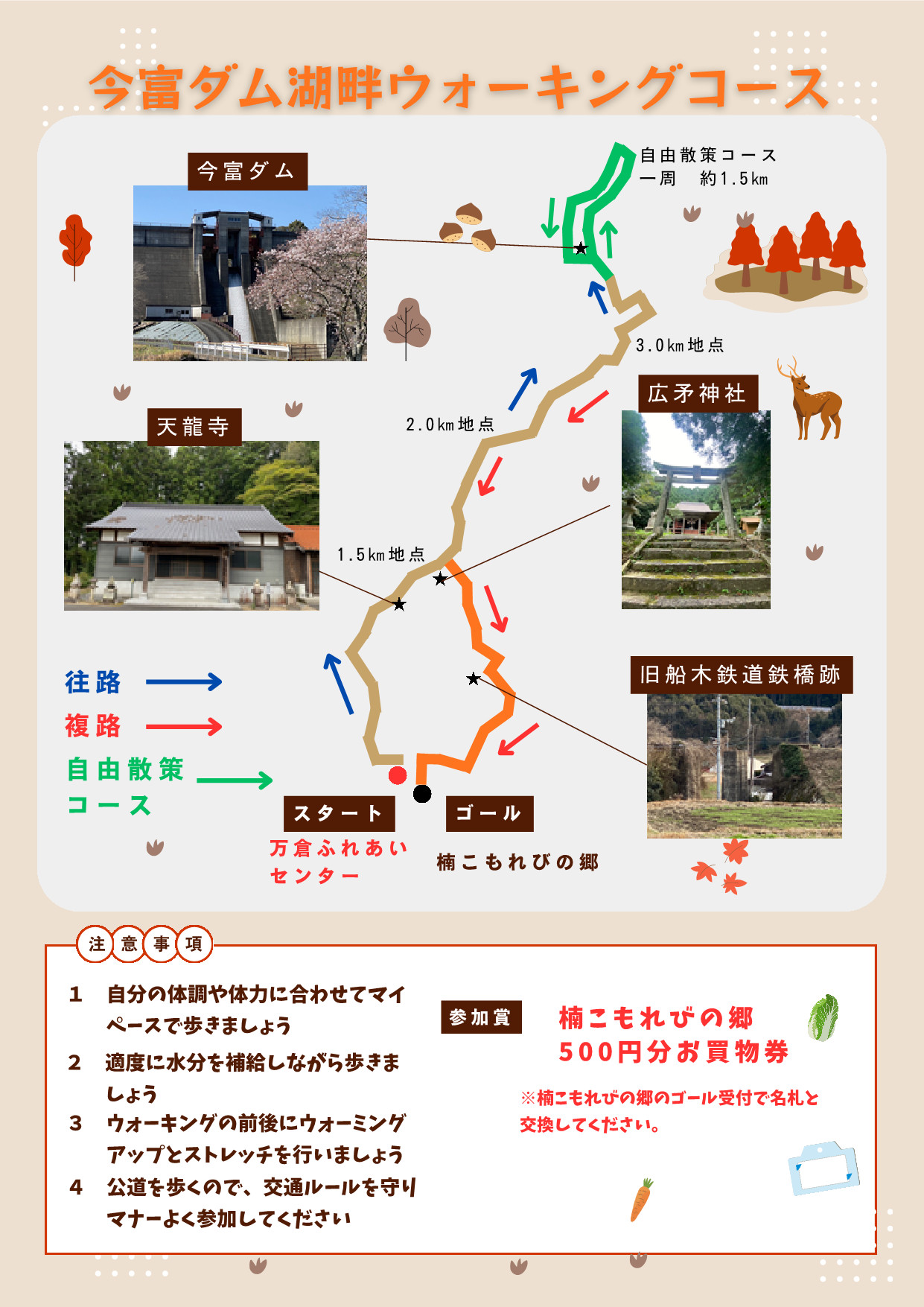 完歩賞には、楠こもれびの郷で使える500円のお買い物券をプレゼント。