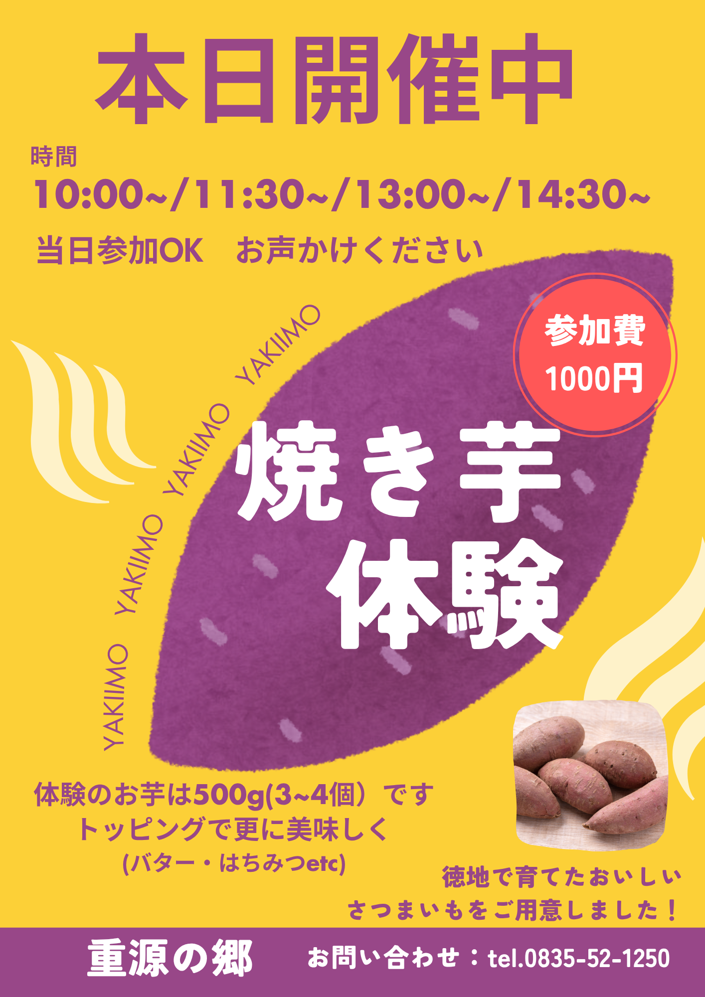 重源の郷では11月の週末に徳地で育てたさつまいもを使った焼き芋体験を行います!!