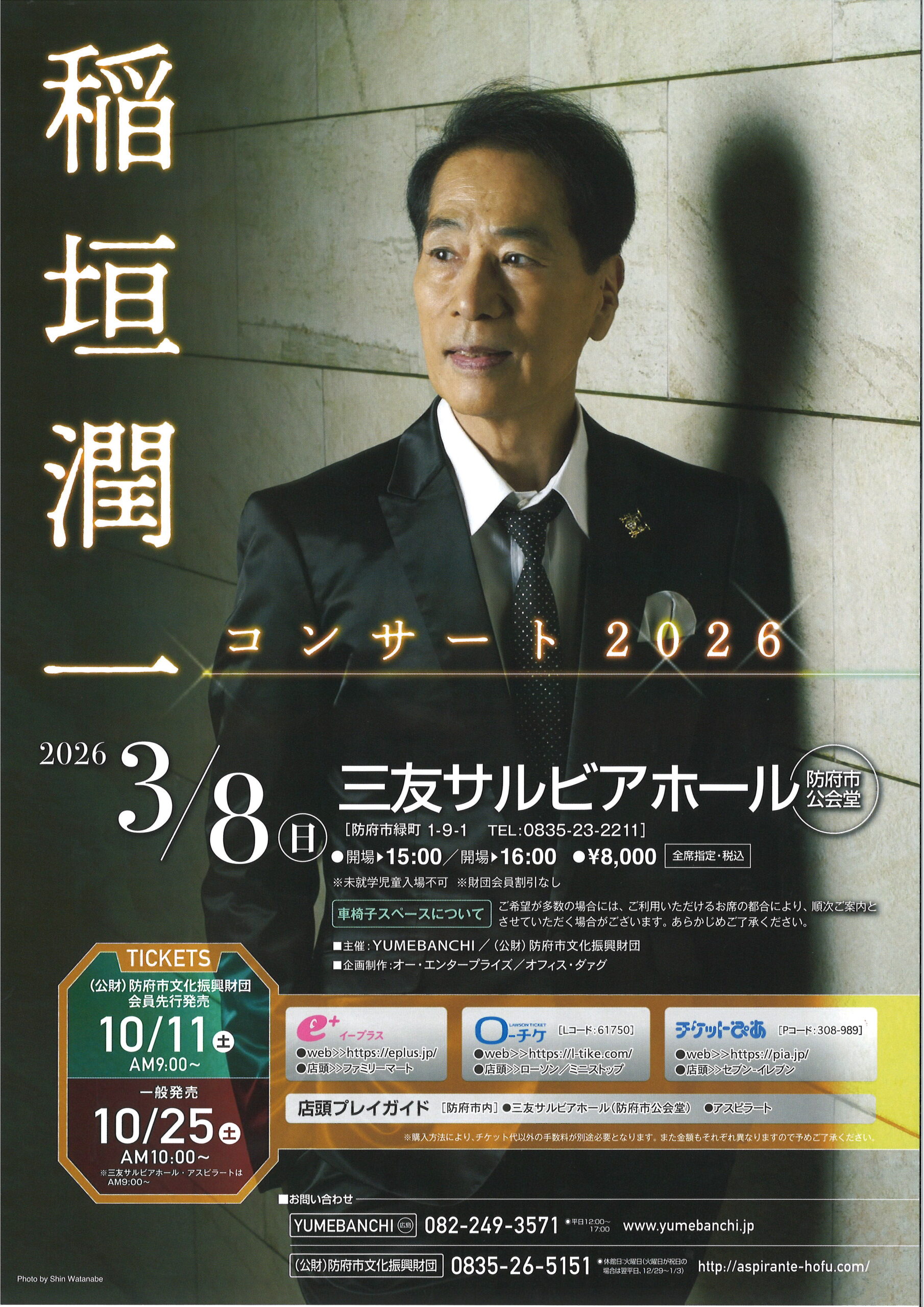 財団会員先行発売:10月11日(土)9:00からアスピラート窓口にて