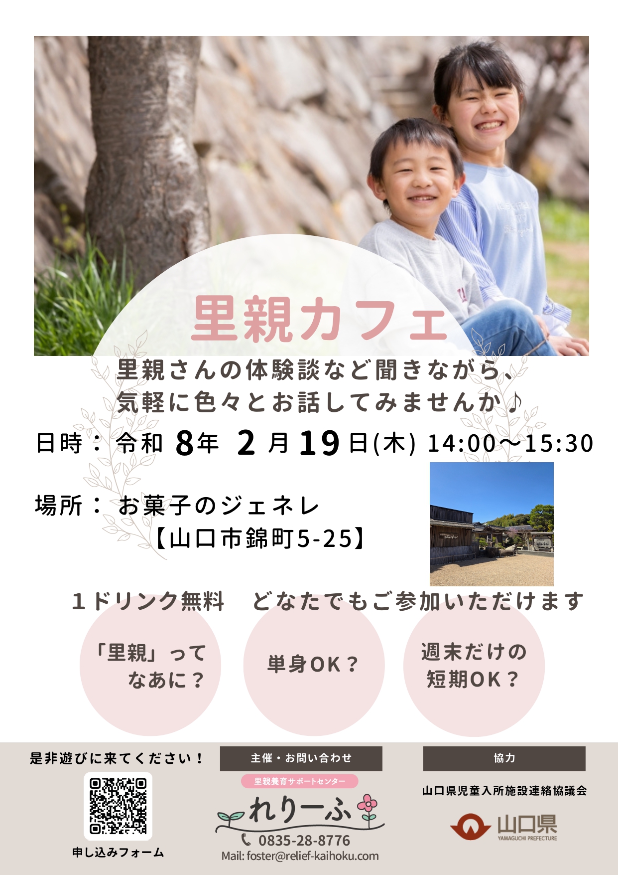 この度、里親制度説明会として「里親カフェ」が開催されます。里親について知りたい、ご興味をお持ちの方は是非ご参加ください。