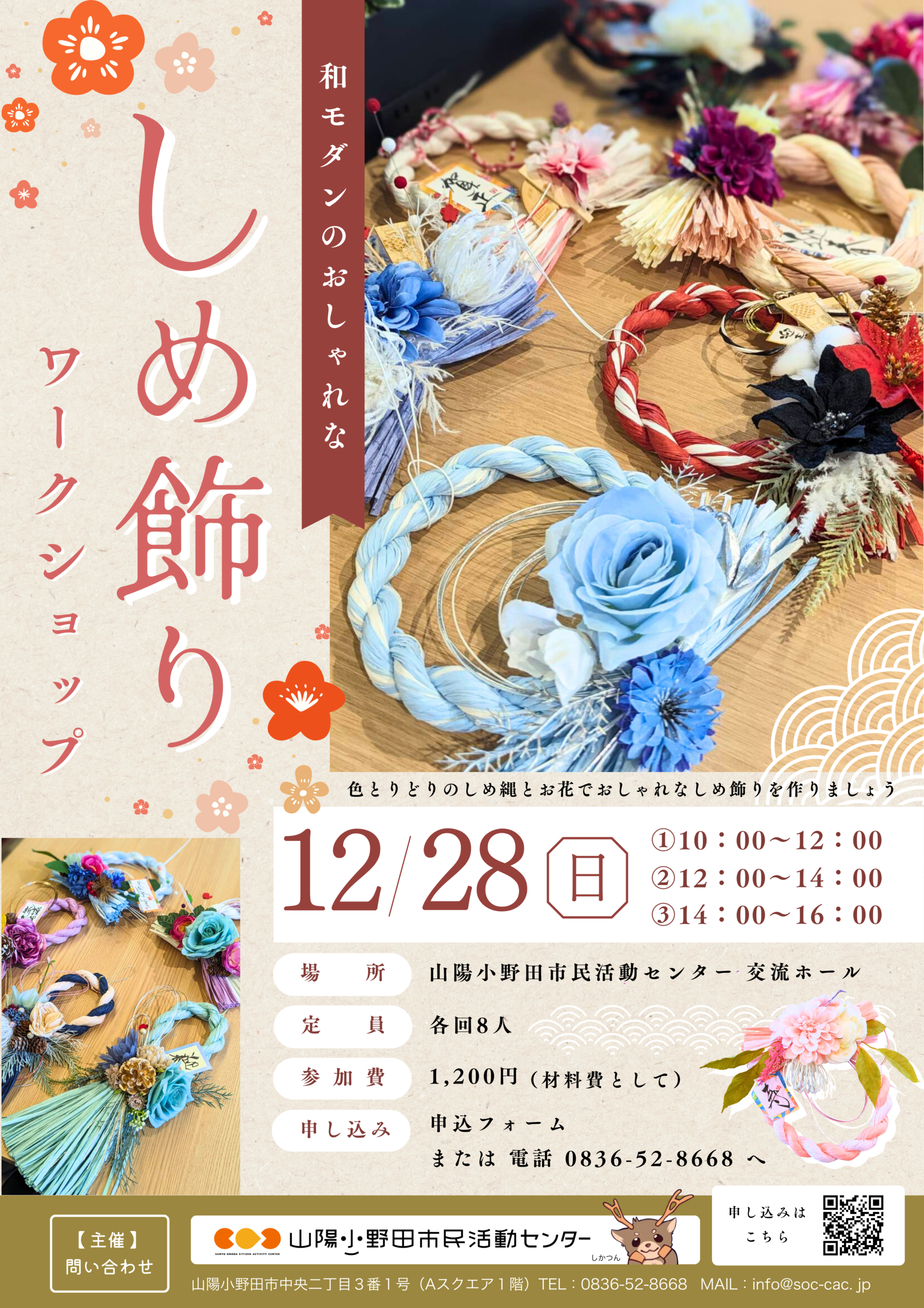 色とりどりのしめ縄とお花でおしゃれなしめ飾りを作りましょう!!