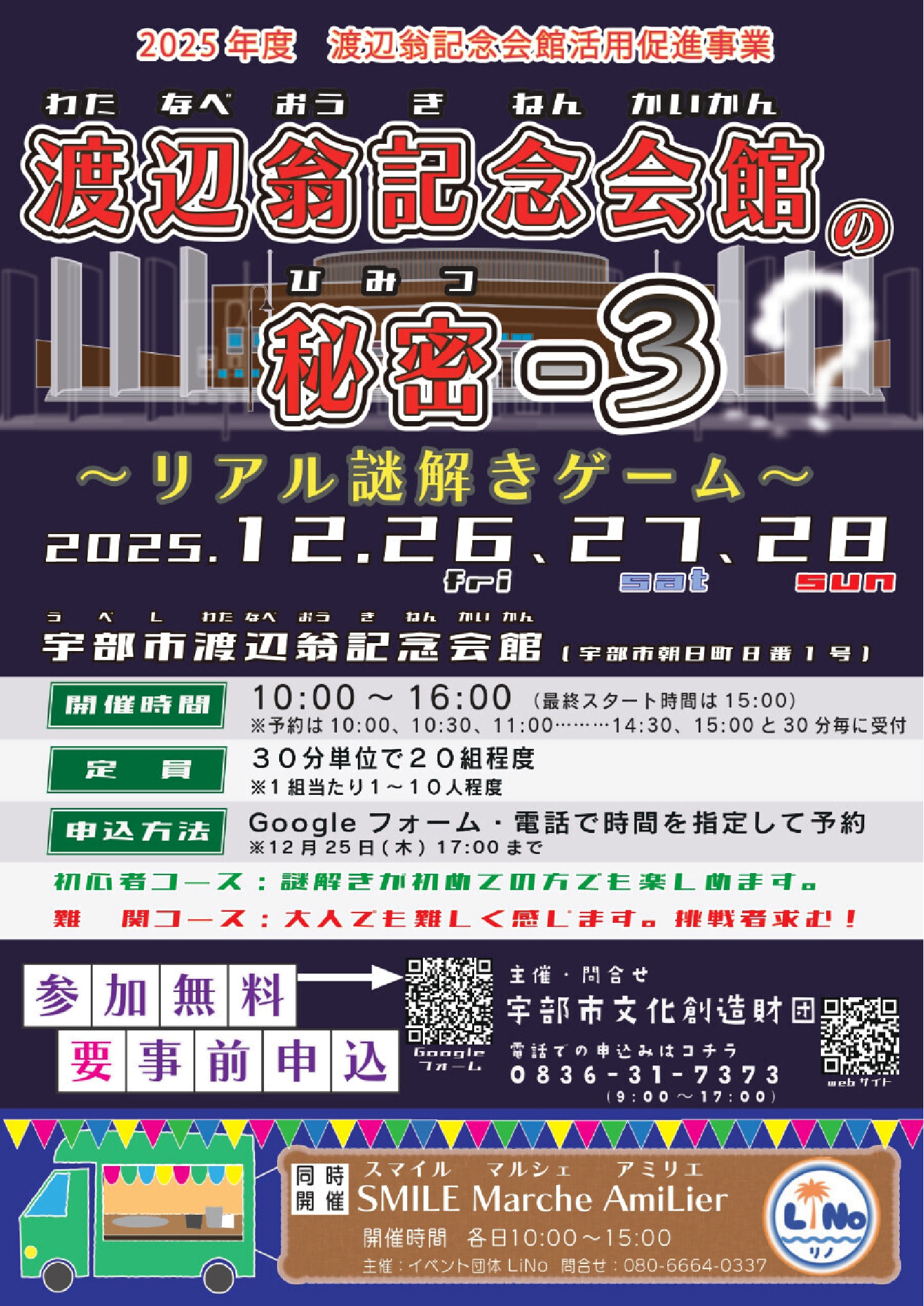 また、同日渡辺翁記念会館内ではリアル謎解きゲームも開催!ぜひお越しください。