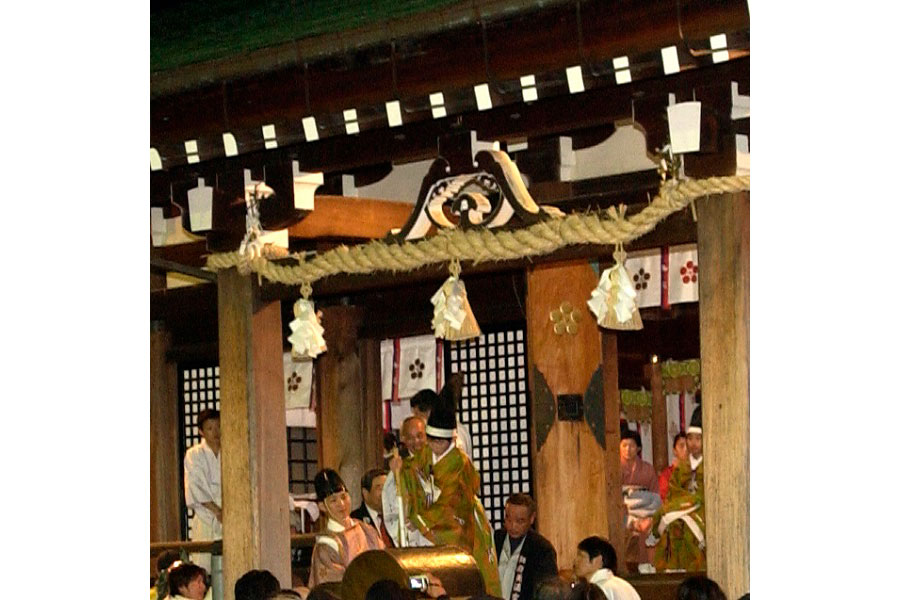 節分祭に併せ、御神幸祭(ごじんこうさい)に供奉(ぐぶ)する神牛役(かみうしやく)を、くじ上げにより定める開運招福の神事です。