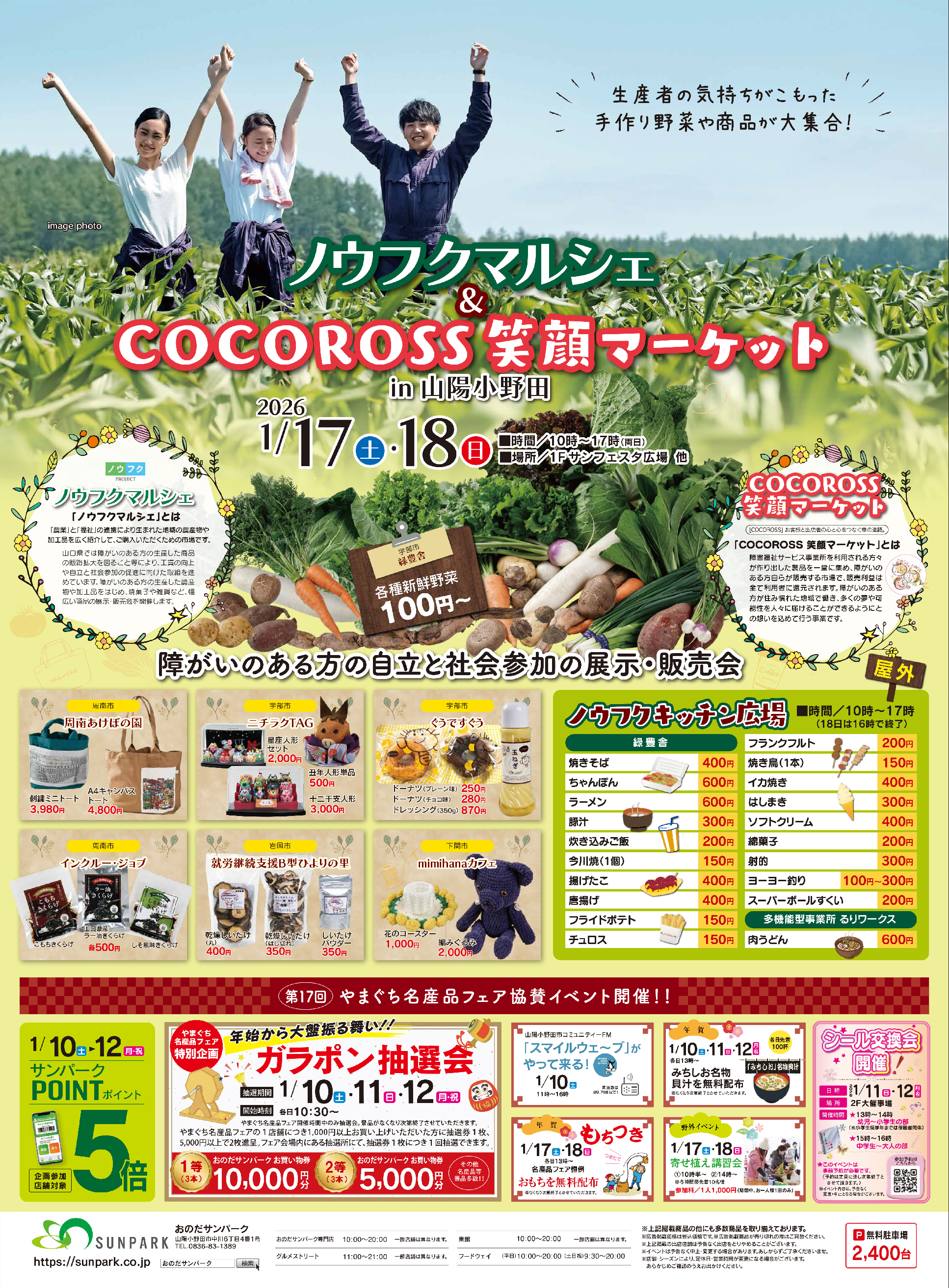 ノウフクマルシェ&COCOROSS笑顔マーケットin山陽小野田を開催します。