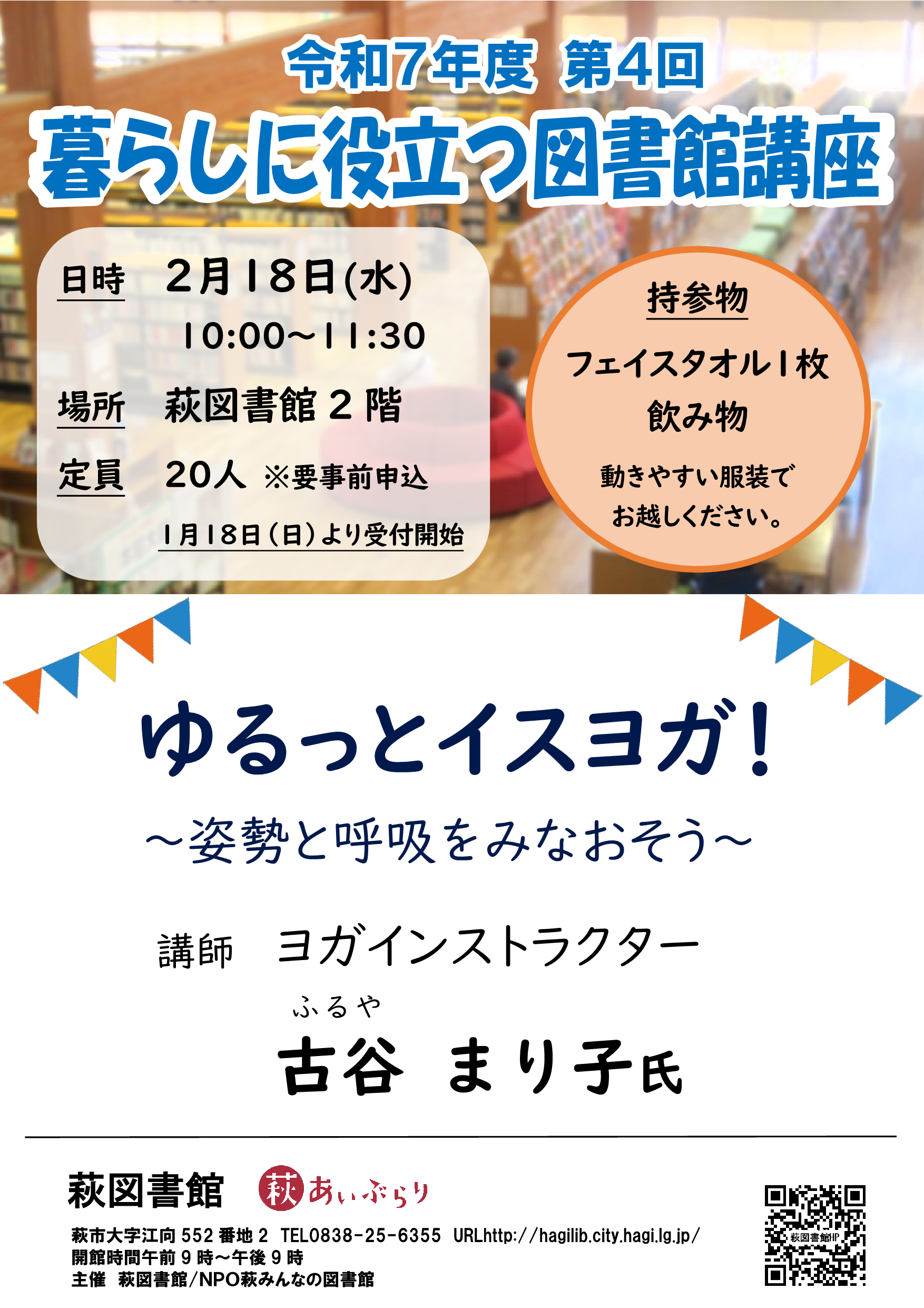 令和7年度第4回 暮らしに役立つ図書館講座 ゆるっとイスヨガ!~姿勢と呼吸をみなおそう~を開催します。
