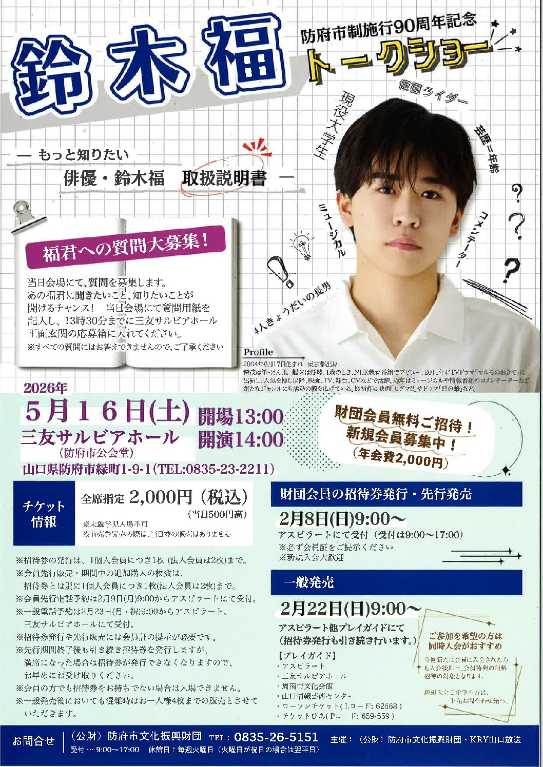 ※当日会場にて、質問を受け付けします。5月16日(土)13:30までに、三友サルビアホール正面玄関の応募箱に入れてください。