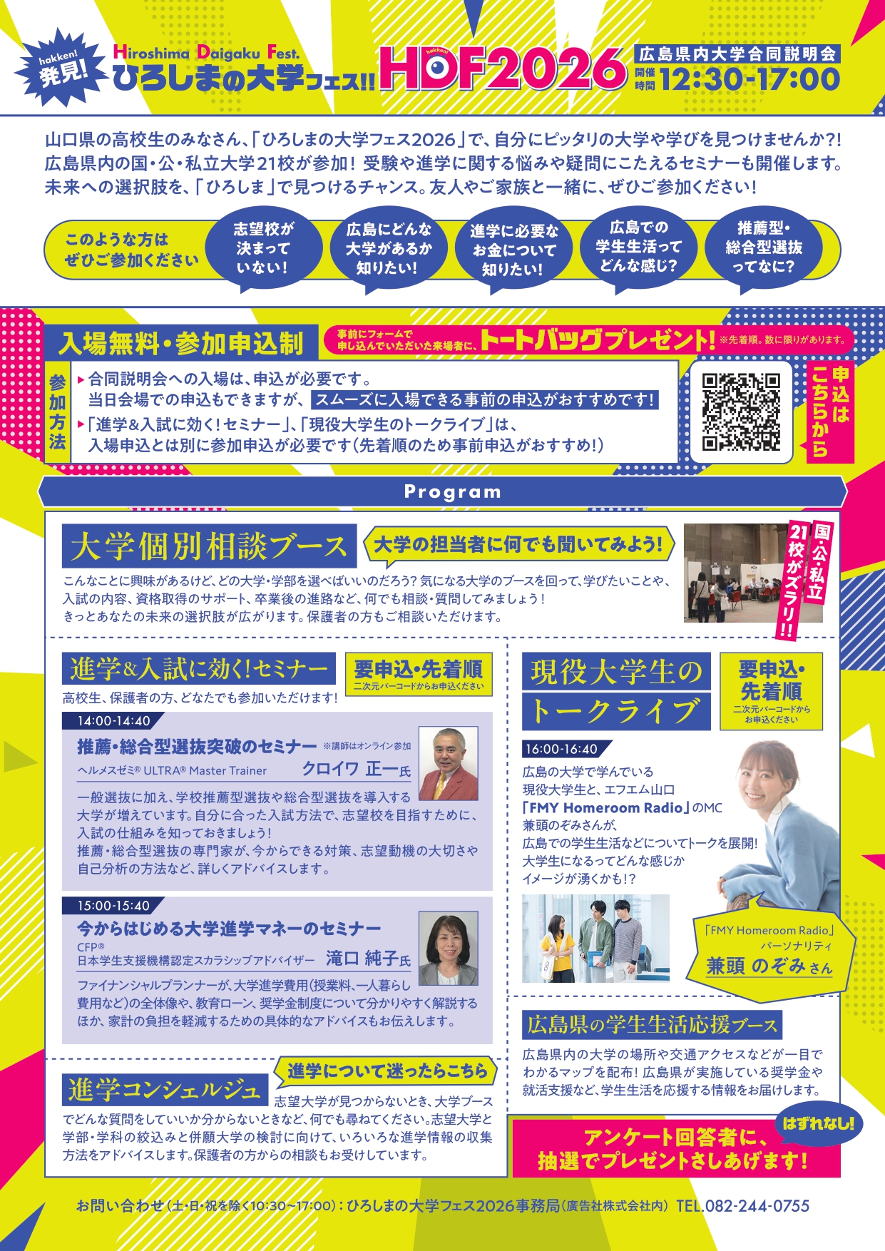 広島県内の国・公・私立大学21校による大学説明会を山口市で開催!