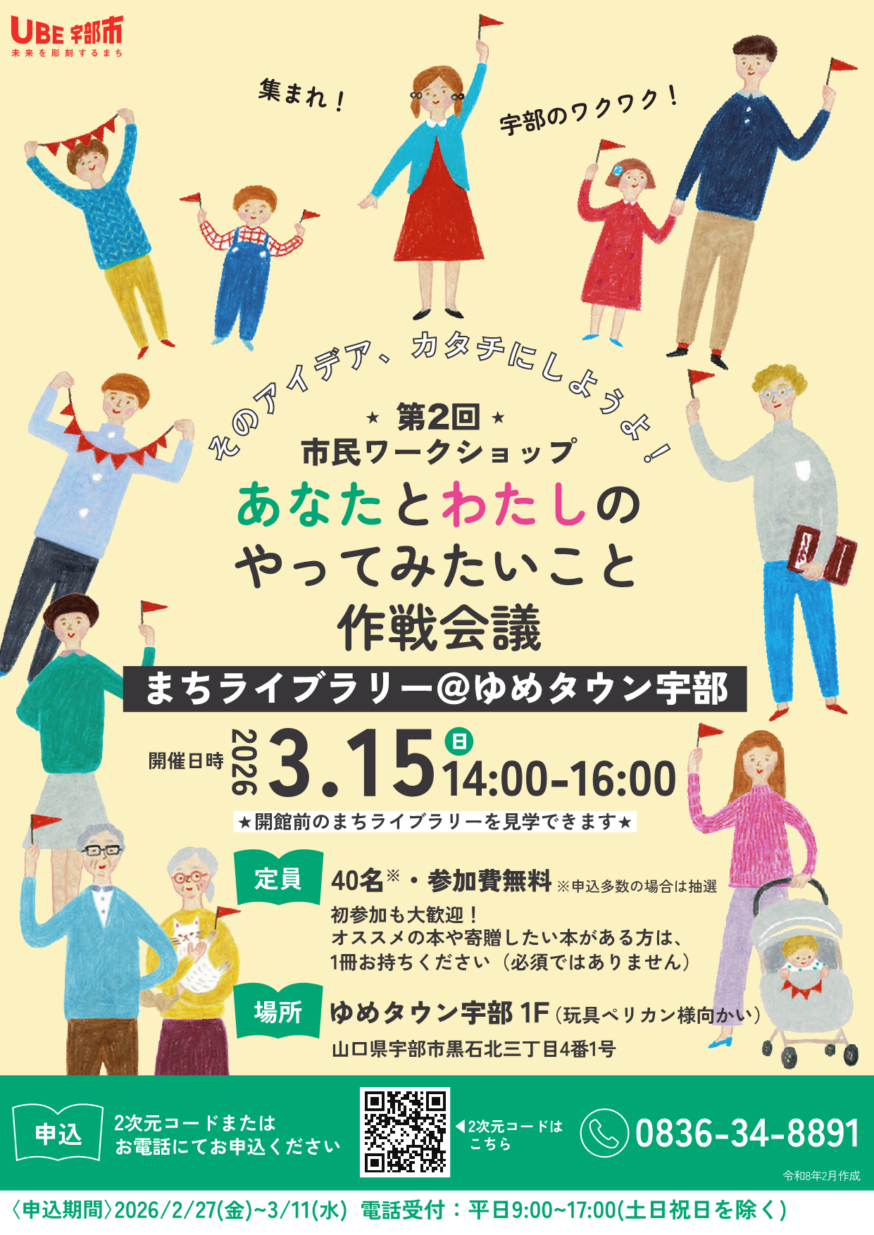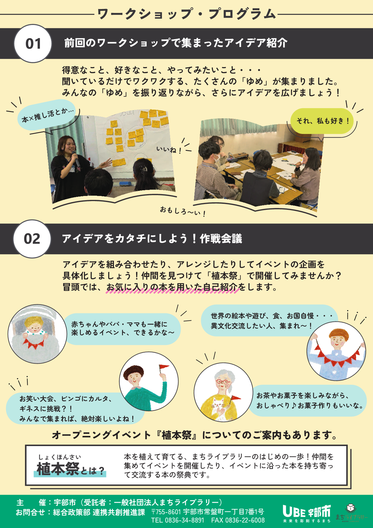 【要申込】まちライブラリー@ゆめタウン宇部 第2回市民ワークショップ「あなたとわたしのやってみたいこと作戦会議」