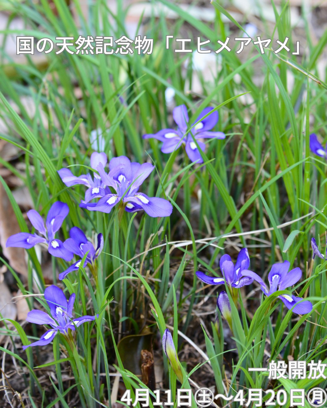 国の天然記念物エヒメアヤメ自生南限地帯の一つである西浦小茅地区の自生地 が、開花時期にあわせて一般開放されます。