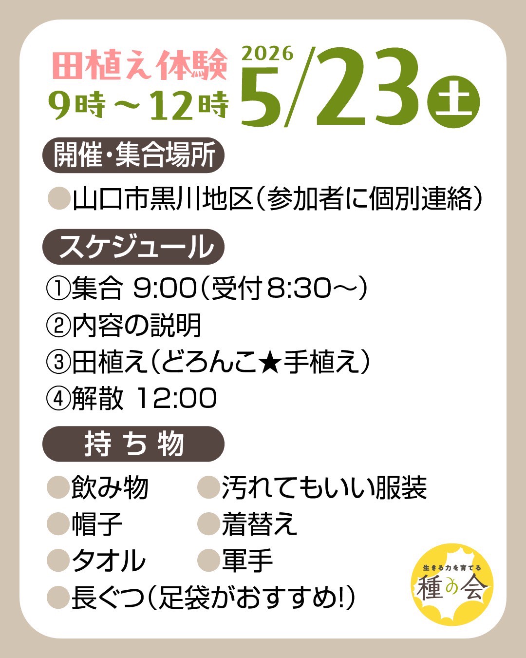 - 参加費:20,000円(税込)/ 1家族 支払い:当日現金 or 銀行振込(5/22まで)