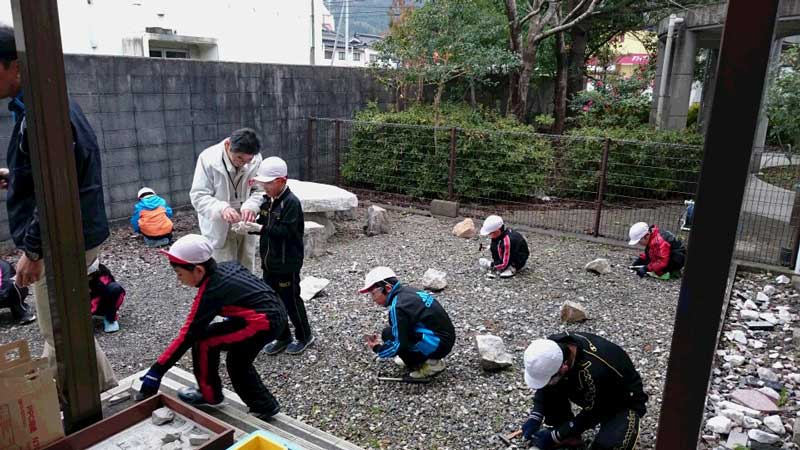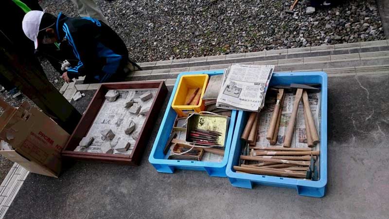 また、採集した化石には邪魔な石がくっついていて目当ての化石を隠している場合があります。この邪魔な石を取り除く作業(クリーニング)も体験していただきます。