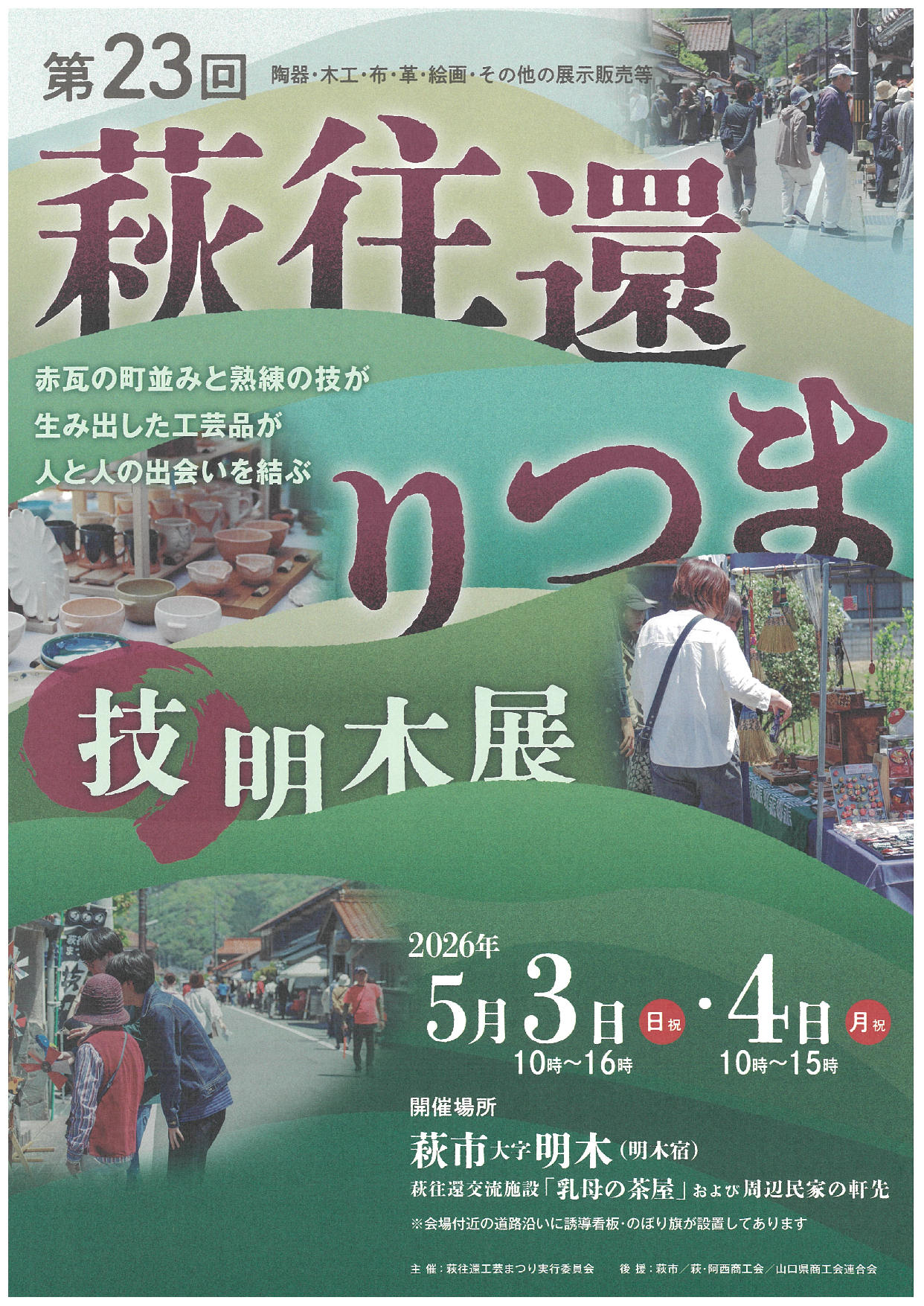萩往還交流施設「乳母の茶屋」や周辺民家の軒先を舞台に、県内外の伝統工芸品の展示販売(陶器・木工・布・革等)、絵画等の展示、地元特産品の販売、ワークショップや、飲食コーナー、オカリナ演奏などがあります。