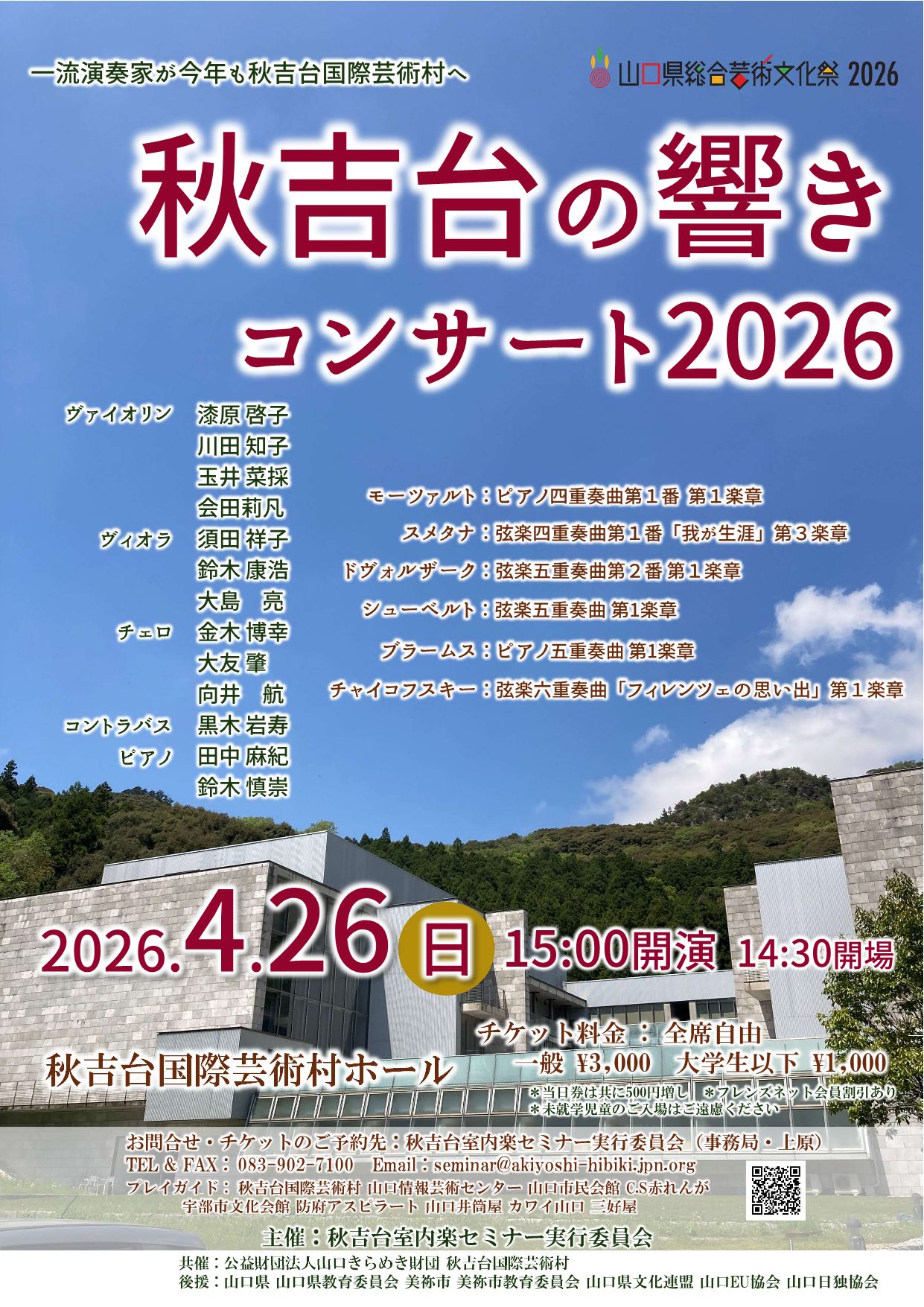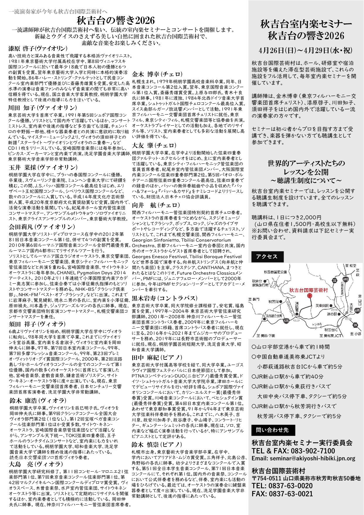 国内外で活躍している一流講師陣による伝統の室内楽セミナー「秋吉台の響き」。