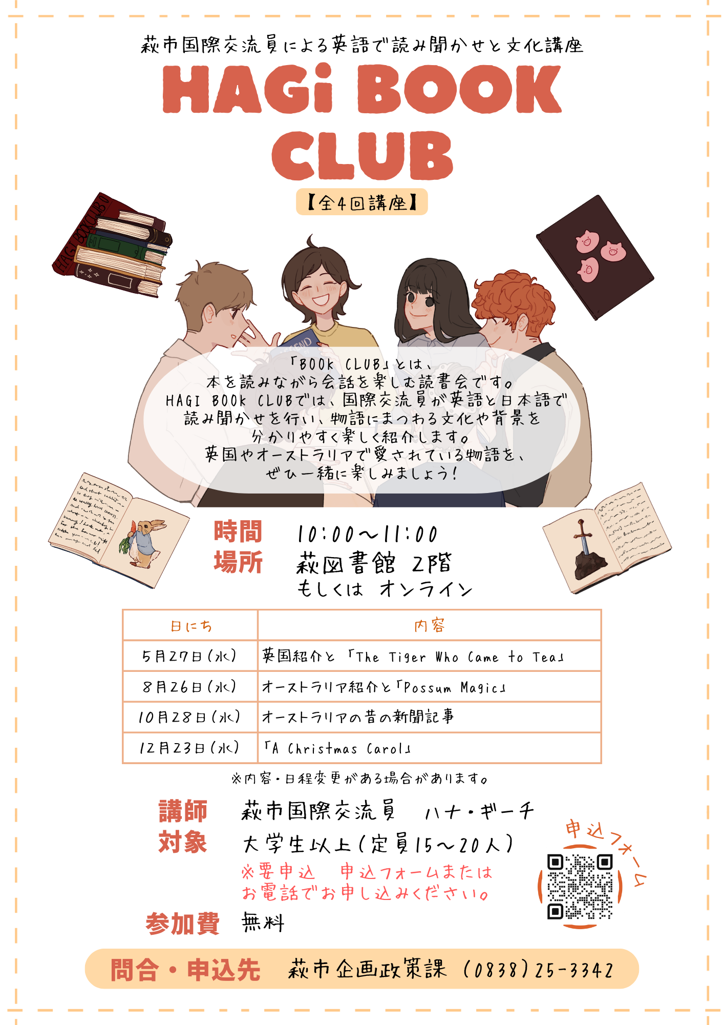 申込フォーム(Hagi Book Club)https://forms.gle/tuiGiXVd8pJyt82B7
