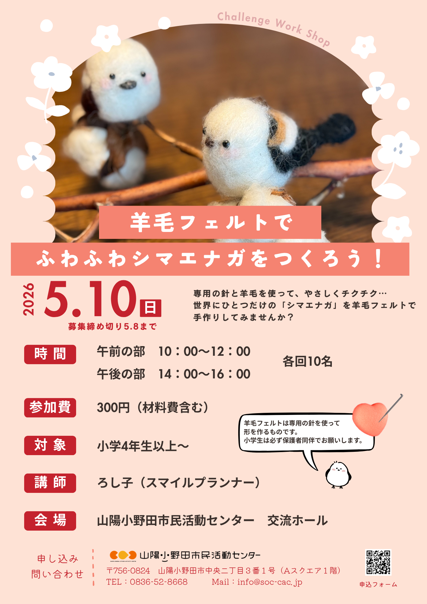 【要申込】羊毛フェルトでふわふわシマエナガをつくろう