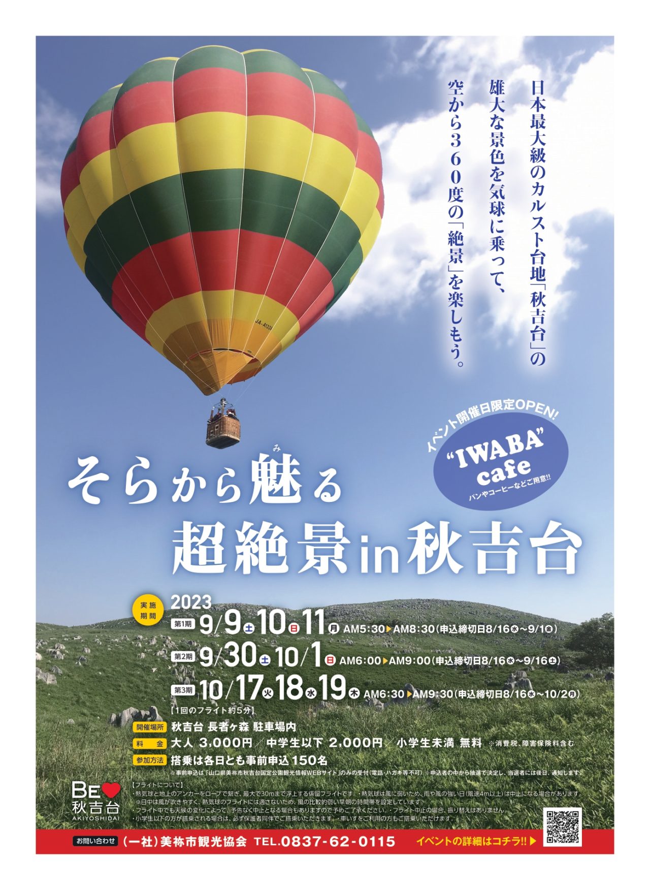 日本最大級のカルスト台地「秋吉台」の雄大な景色を熱気球に乗って、空から360度の「絶景」を楽しもう!