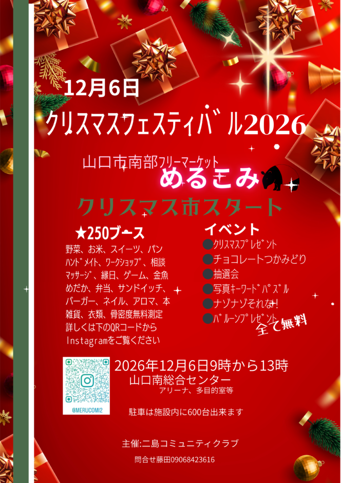 山口南総合センターを会場に、名田島をはじめとした地元の新鮮野菜、しめ縄、切り花、おせち食材などのお正月用品を中心に販売する年末恒例の朝市「年末朝市in名田島」が、4年ぶりに復活します。