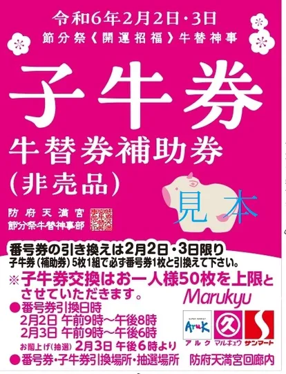 また、3日午後2時、午後3時、午後4時の3回に分けて、年男・年女による開運招福豆まきが行われます。
