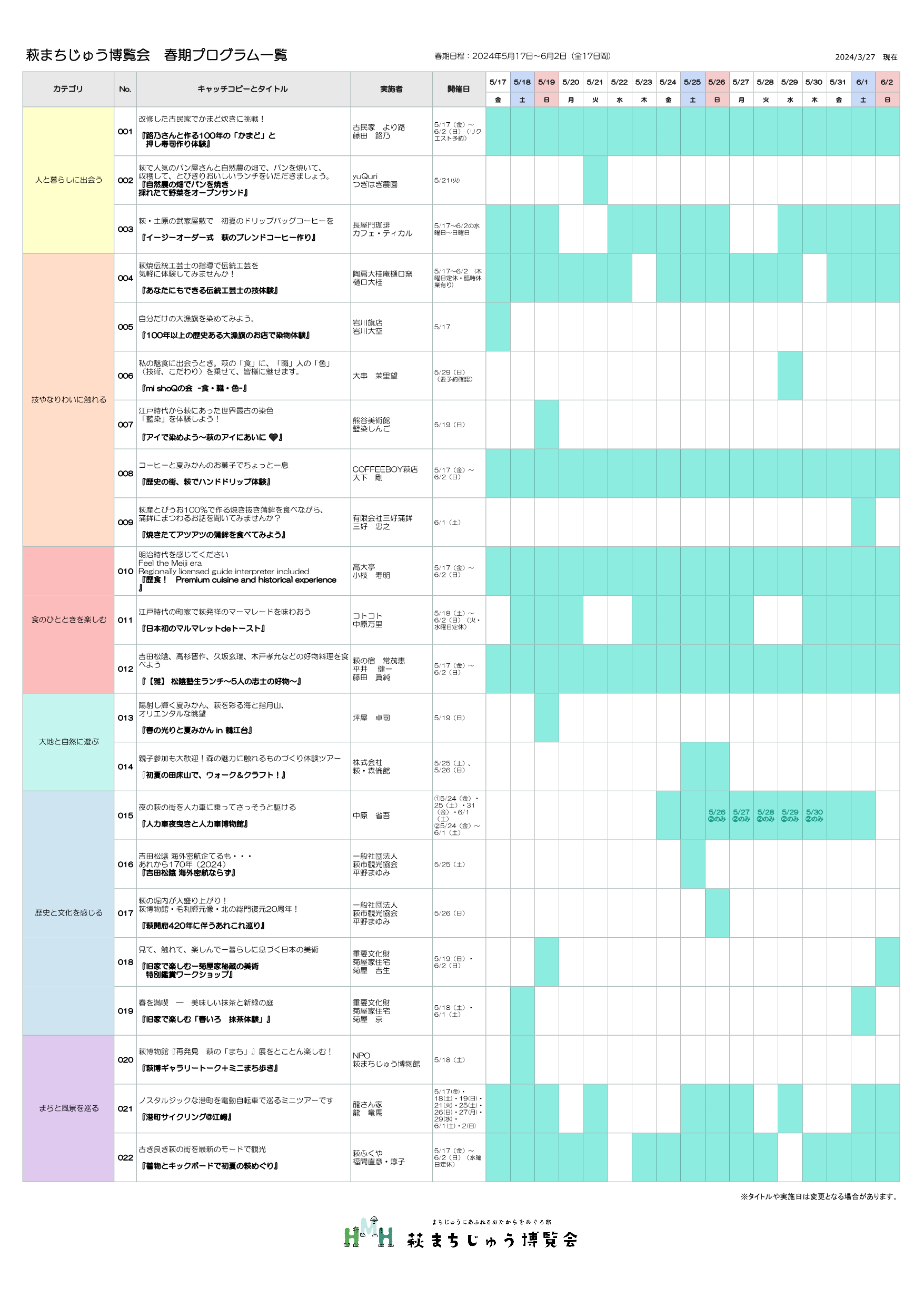 萩の暮らしや風景、技や食などの”おたから”にふれるプログラムを来訪者に提供し、『まちじゅうにあふれるおたからをめぐる旅』を楽しんでいただきます。