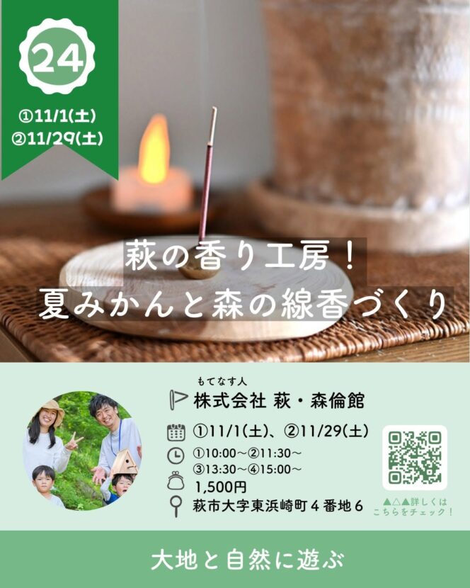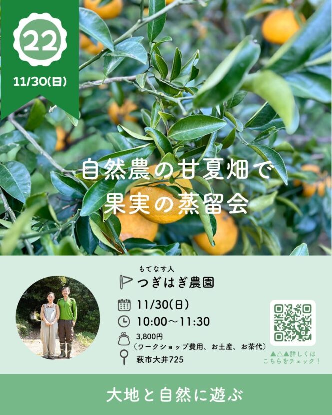 開催中 萩市 【要申込】萩まちじゅう博覧会~萩の甘夏すっきりアロマヨガ~ 2025年10月17日(金)〜11月21日(金)の間の、水、金、土※後日変更の可能性あり※11/7‧8はお休み その他 教室・研修 フィットネス・ヨガ