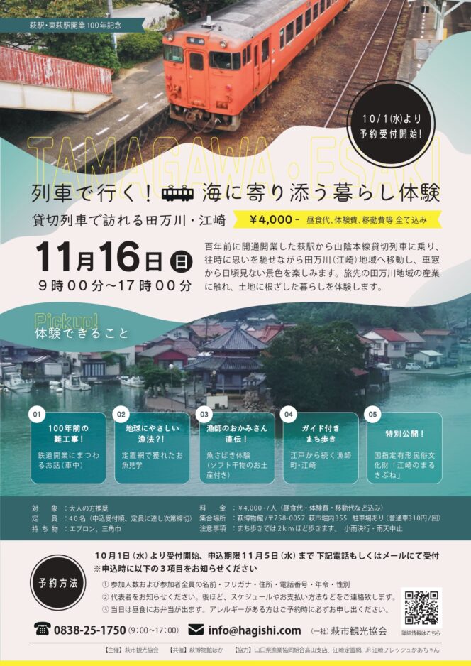 【要申込】萩おたからツーリズム in 江崎 2025年11月30日(日) 田万川地域 江崎地区 【集合】マイクロバス利用の場合:萩市役所前庭8:50 現地集合の場合:旧山口県漁協江崎支店前 9:50 萩市 【要申込】萩おたからツーリズム in 江崎 2025年11月30日(日) アート・歴史・文化 その他 観光・名所