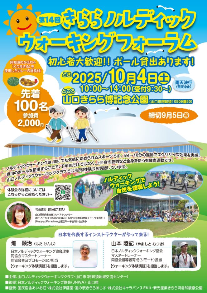 【要申込】ノルディックウォーキング指導者養成講習会 2026年3月21日(土) 阿知須地域交流センター 2階 大ホール 山口市 山口市 南エリア 阿知須 【要申込】ノルディックウォーキング指導者養成講習会 2026年3月21日(土) その他 体験 教室・研修
