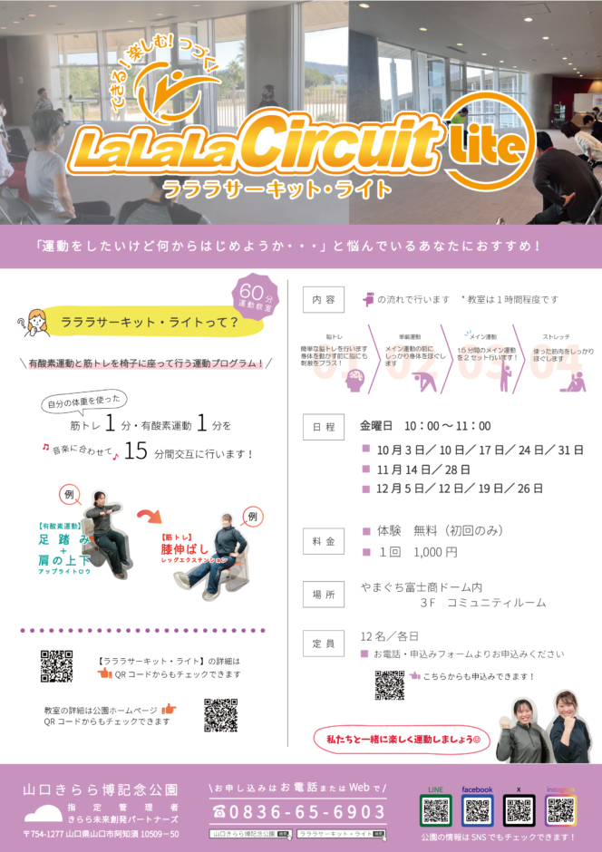 開催中 山口市 山口市 南エリア 阿知須 【要申込】ラララサーキット・ライト教室 (10月~12月) 10月3日、10日、17日、24日、31日、11月14日、28日、12月5日、12日、19日、26日(各金曜日) 体験 スポーツ・レジャー 健康・美容・温泉 教室・研修
