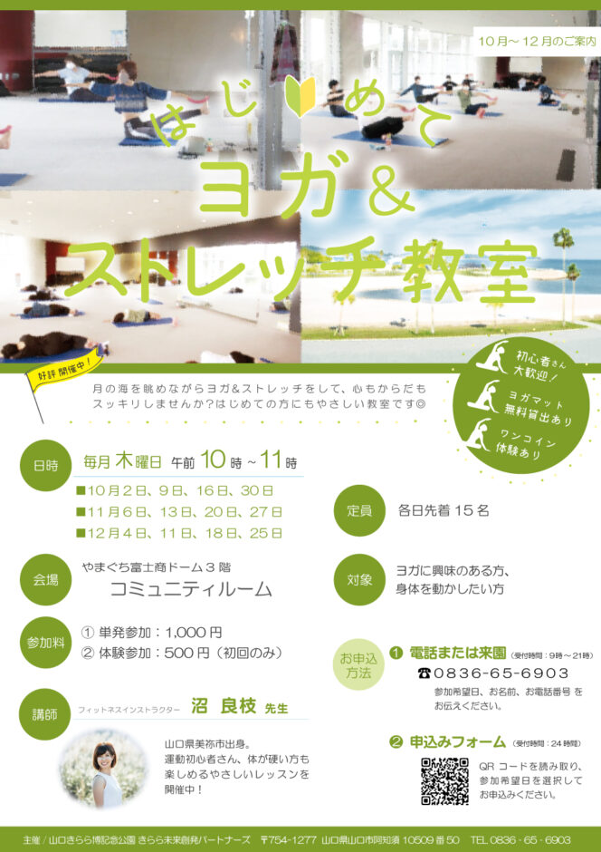 山口市 山口市 南エリア 阿知須 【要申込】はじめてヨガ&ストレッチ教室(10月~12月) 10月2日、9日、16日、30日、11月6日、13日、20日、27日、12月4日、11日、18日、25日(各木曜日) 体験 健康・美容・温泉 フィットネス・ヨガ