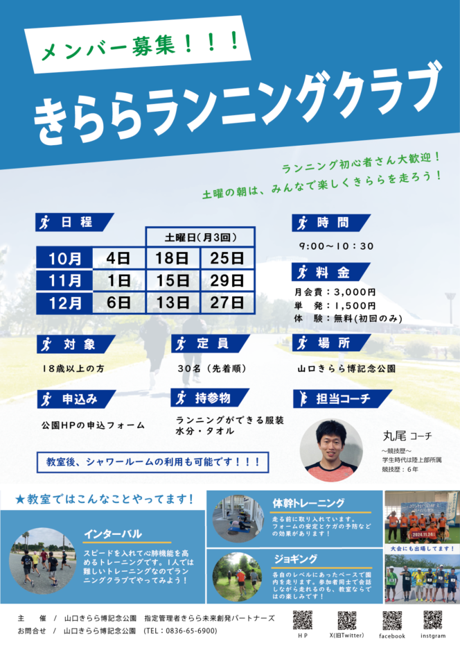 山口市 山口市 南エリア 阿知須 【要申込】きららランニングクラブ(10月~12月) 10月4日、18日、25日、11月1日、15日、29日、12月6日、13日、27日(各土曜日) 体験 スポーツ・レジャー 健康・美容・温泉 教室・研修