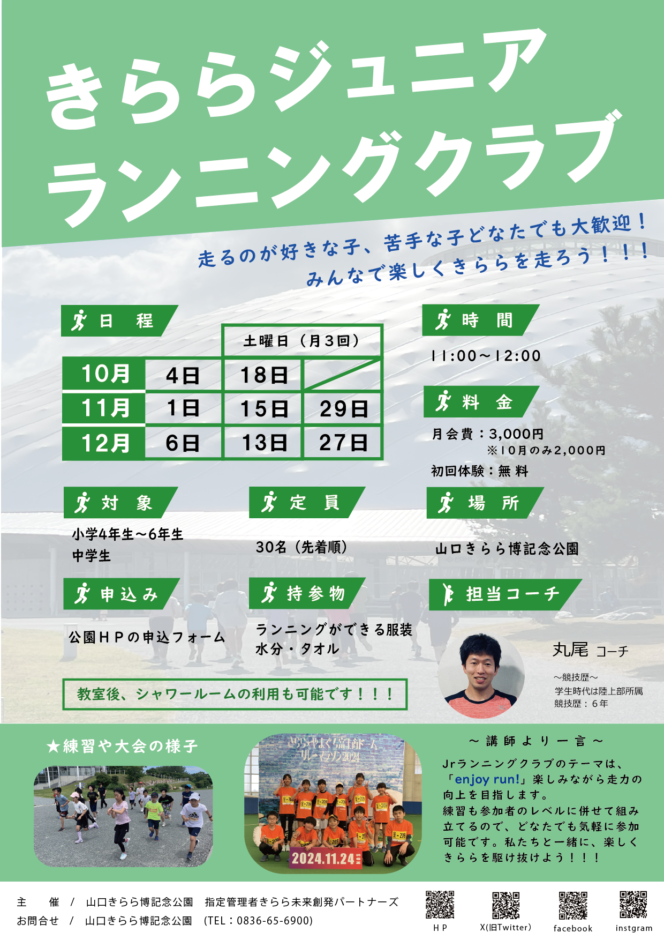山口市 山口市 南エリア 阿知須 【要申込】きららJrランニングクラブ(10月~12月) 10月4日、18日、11月1日、15日、29日、12月6日、13日、27日(各土曜日) キッズ 体験 スポーツ・レジャー 教室・研修