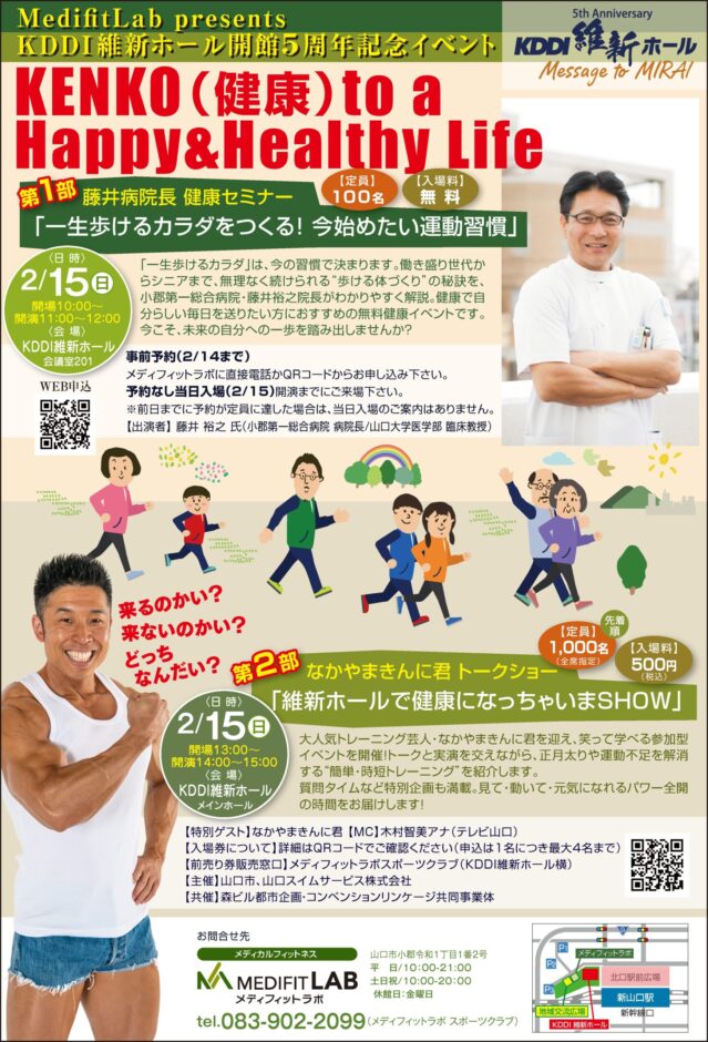 山口市 新山口駅エリア 小郡 【要申込】山口市ずっと元気プロジェクト×メディフィットラボ 2026年1月22日(木)、2月19日(木)、3月19日(木) スポーツ・レジャー 体験 健康・美容・温泉 フィットネス・ヨガ シニア
