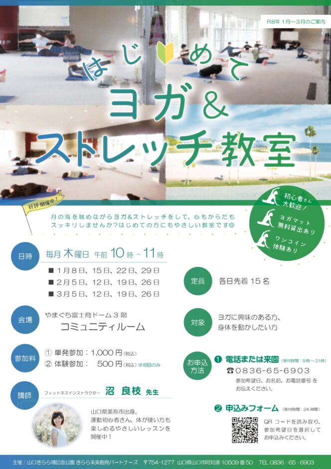 山口市 山口市 南エリア 阿知須 【要申込】はじめてヨガ&ストレッチ教室(1月~3月) 2026年1月8日、15日、22日、29日、2月5日、12日、19日、26日、3月5日、12日、19日、26日(各木曜日) スポーツ・レジャー 体験 健康・美容・温泉 教室・研修 フィットネス・ヨガ