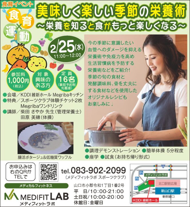 山口市 新山口駅エリア 小郡 【要申込】山口市ずっと元気プロジェクト×メディフィットラボ 2026年1月22日(木)、2月19日(木)、3月19日(木) スポーツ・レジャー 体験 健康・美容・温泉 フィットネス・ヨガ シニア