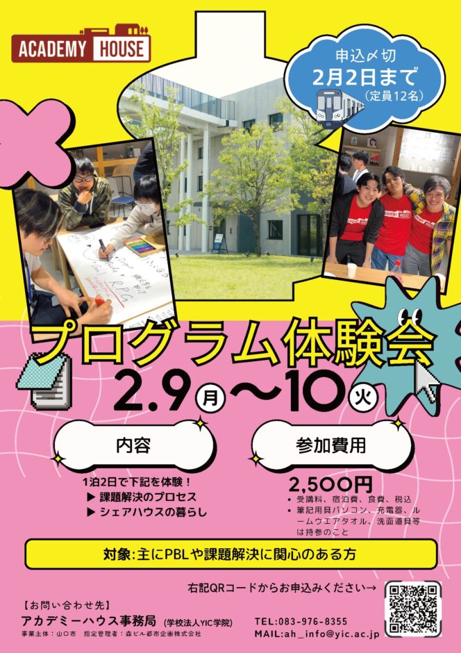 山口市 新山口駅エリア 小郡 【要申込】『アカデミーハウス成果発表会』 ~新山口駅直結!学べるシェアハウス「アカデミーハウス」5 期生 1 年間の集大成~ 2026年3月21日(土) 地域・行政 交流・ボランティア 体験 観光・名所 講演・セミナー