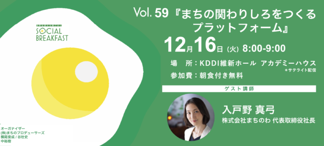 山口市 新山口駅エリア 小郡 【要申込】ソーシャルブレックファースト講師:入戸野 真弓さん(株式会社まちのわ 代表取締役社長) 2025年12月16日(火) その他 交流・ボランティア 体験 講演・セミナー