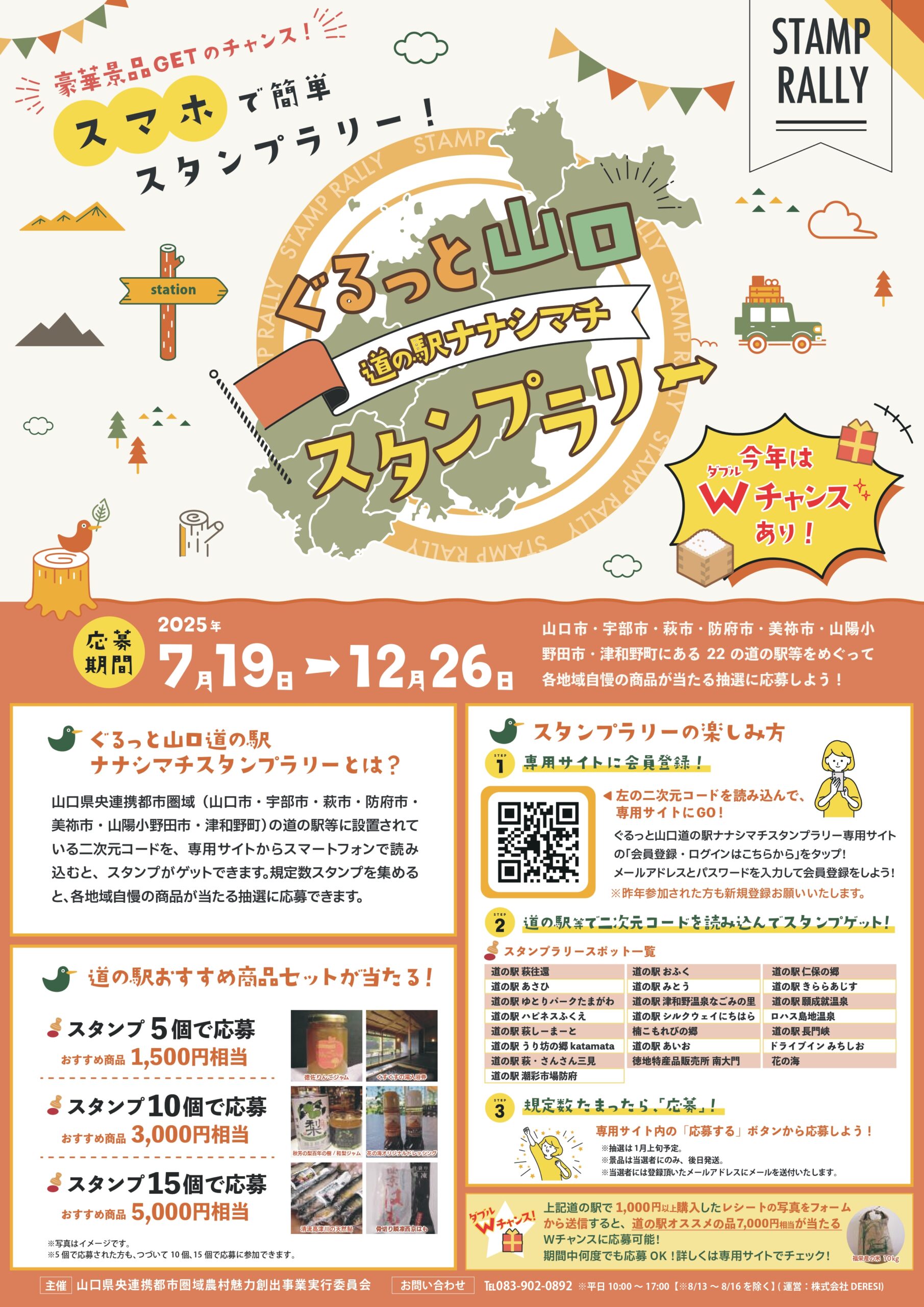 また今年は、各道の駅等で1,000円以上購入された方を対象に、各道の駅等おすすめの品7,000円相当が当たるWチャンスを実施します。