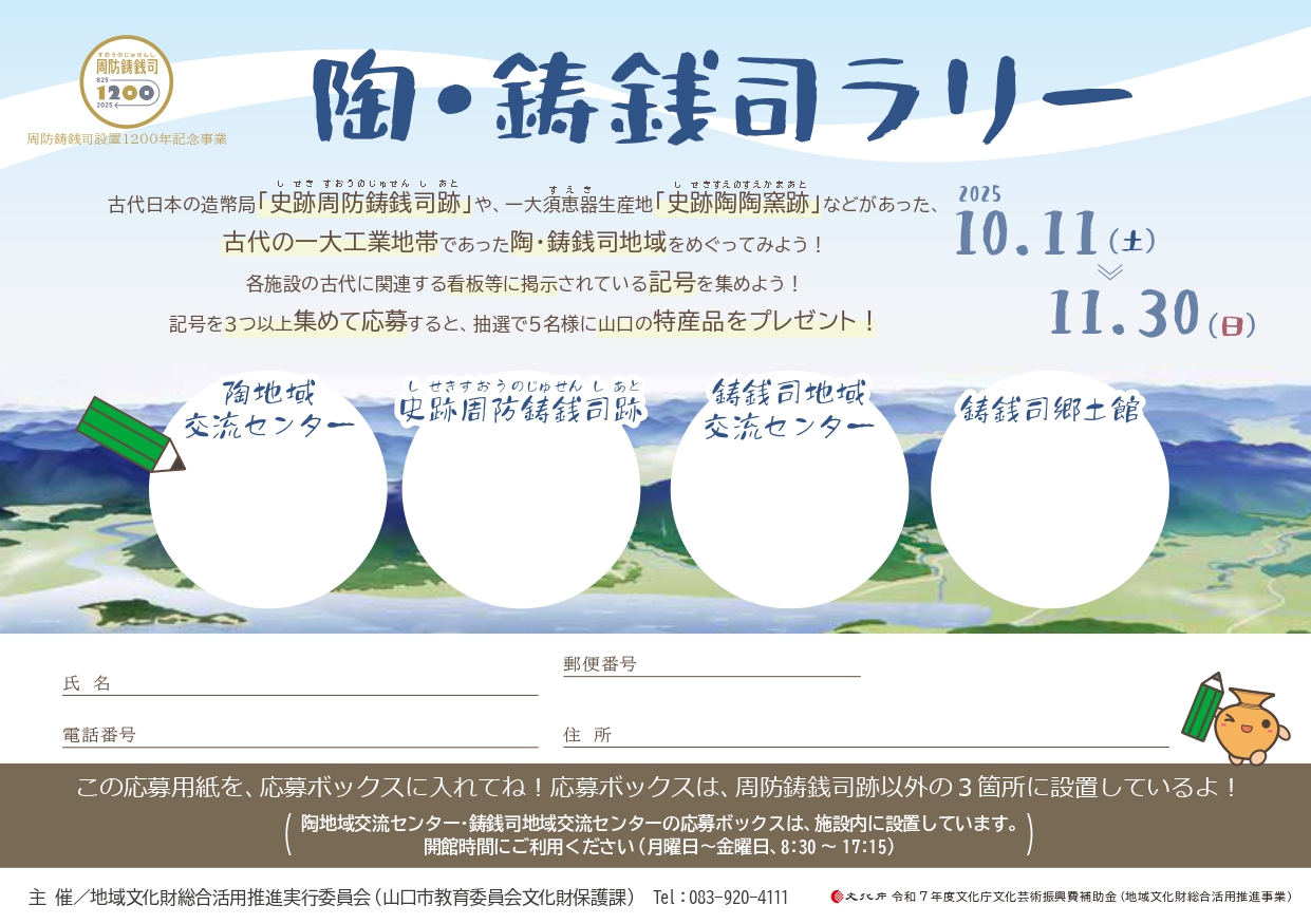 - 【ラリースポット】・史跡周防鋳銭司跡(山口市鋳銭司地内)・鋳銭司郷土館(山口市鋳銭司11422番地)・陶地域交流センター(山口市陶2595番地)・鋳銭司地域交流センター(山口市鋳銭司5675番地1)