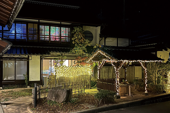 館内、庭園をもみの木ツリー飾り付けとイルミネーション、ミニプロジェクションマッピングで彩ります。