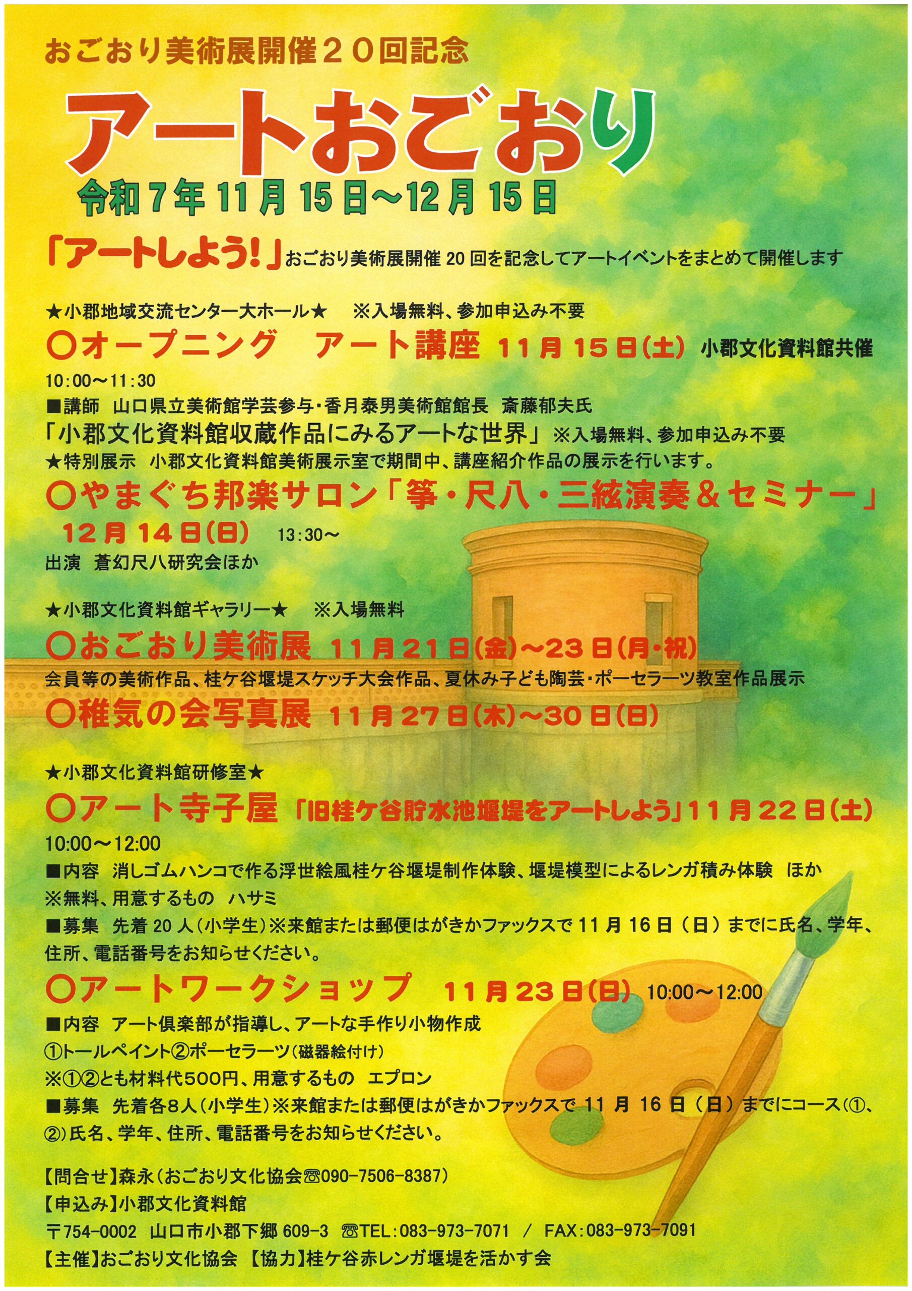 オープニング アート講座「小郡文化資料館収蔵作品にみるアートな世界」(11月15日開催)に関連し、講座内で紹介された館蔵作品の作家と、小郡ゆかりの作家の美術作品を展示します。